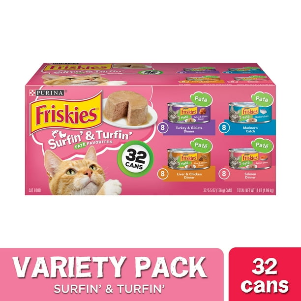 32 Pack Friskies Pate Wet Cat Food Variety Pack Surfin Turfin Favorites 5 5 Oz Cans Walmart Com